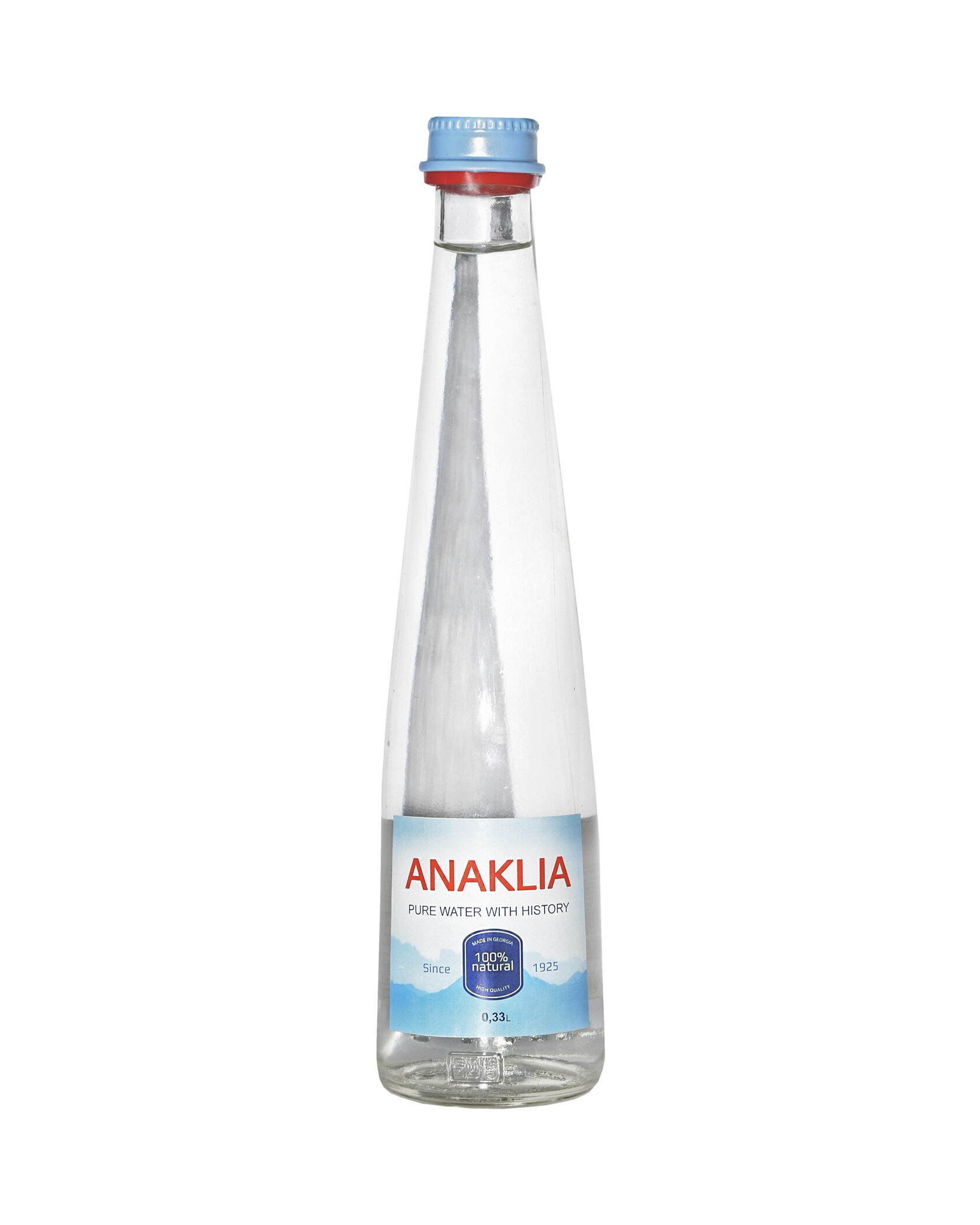 ANAKLIA mineral water supplied in plastic or glass containers.
